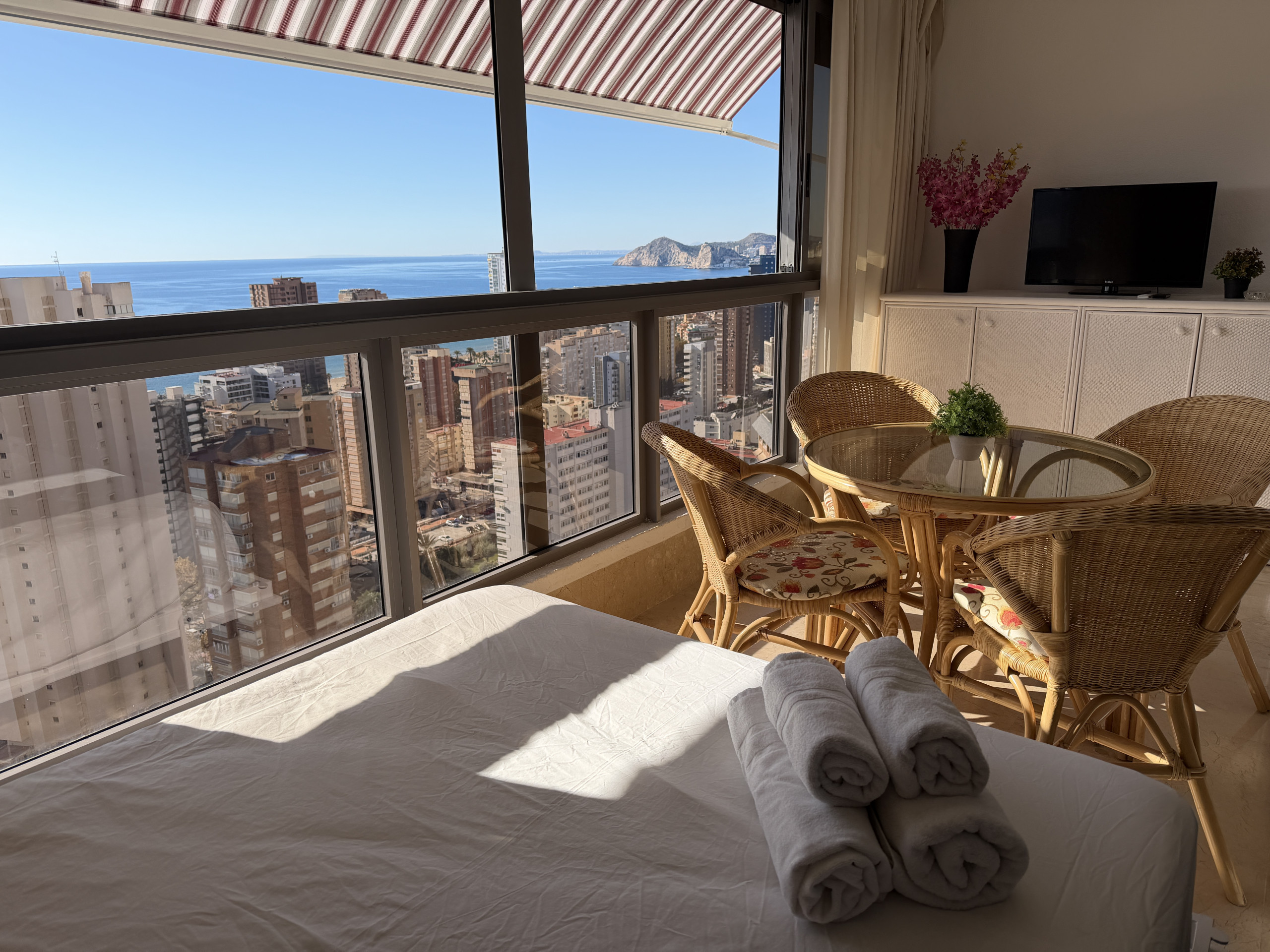 Descubre este apartamento completamente reformado en la planta 13 del edificio Ducado con impresionantes vistas al mar.