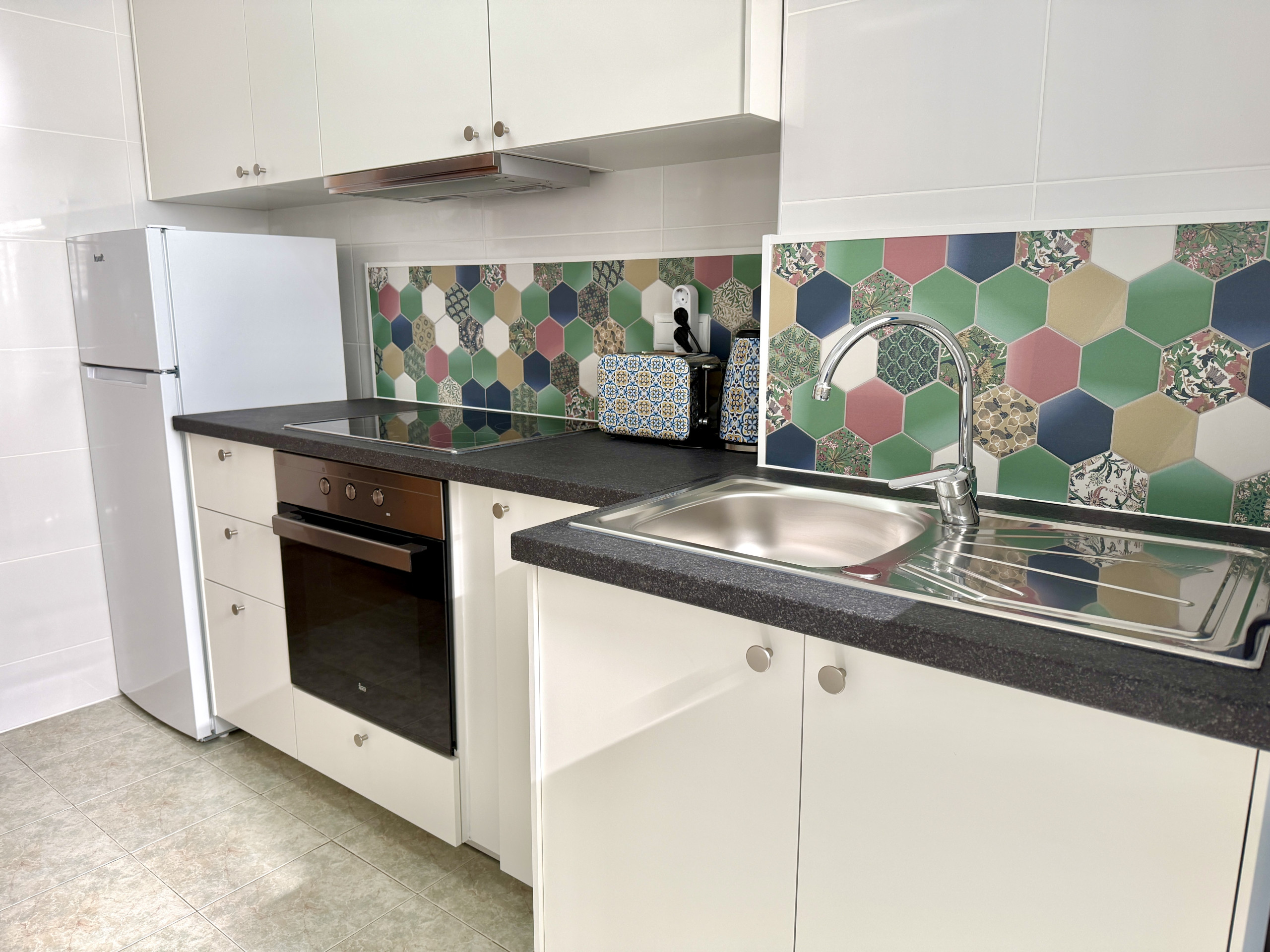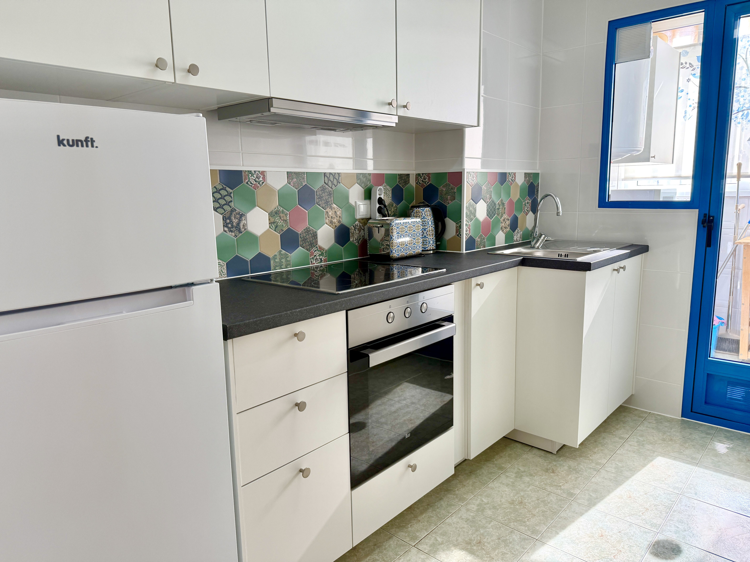 La cocina está equipada con vitrocerámica y lavadora, proporcionando todas las comodidades necesarias para una estancia agradable. El baño es moderno y funcional y dispone de ducha.