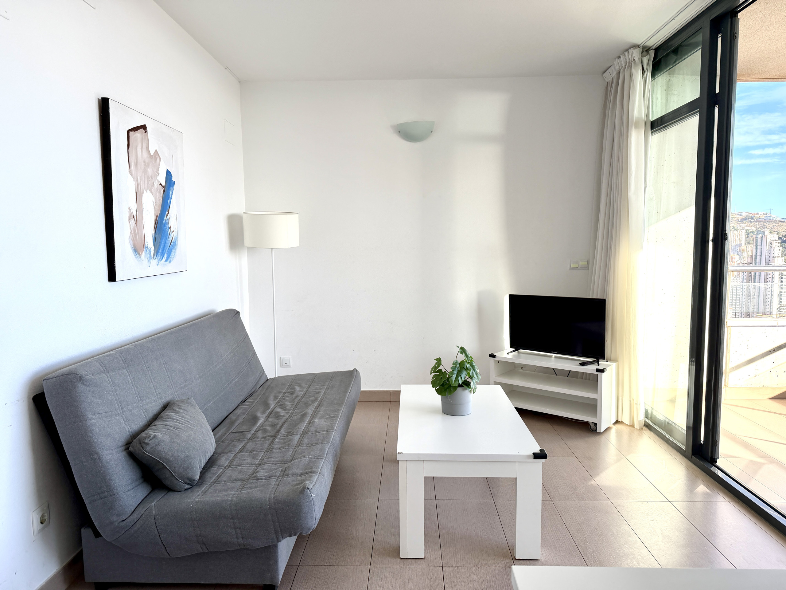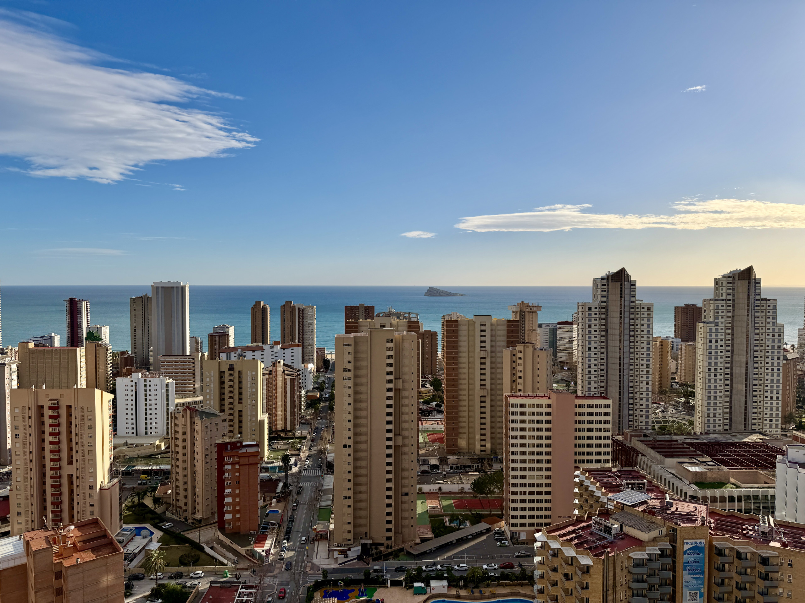 Descubre este apartamento completamente reformado en la planta 13 del edificio Ducado con impresionantes vistas al mar.