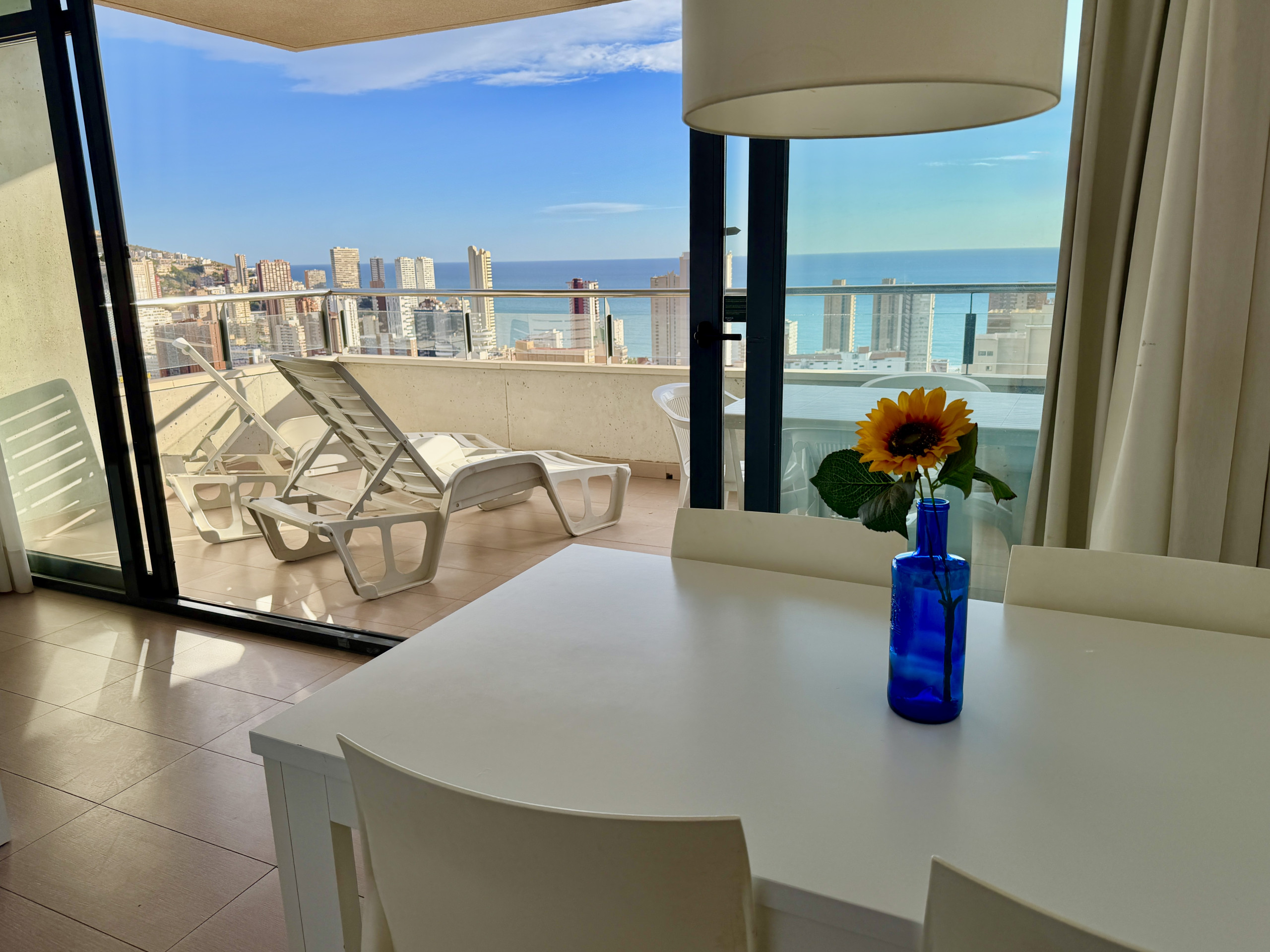 Ubicado en la planta 27 del edificio Torre D’Oboe ofrece unas vistas privilegiadas de la playa de Levante, incluso se puede divisar el Peñón d’Ifach y la bahía de Altea.