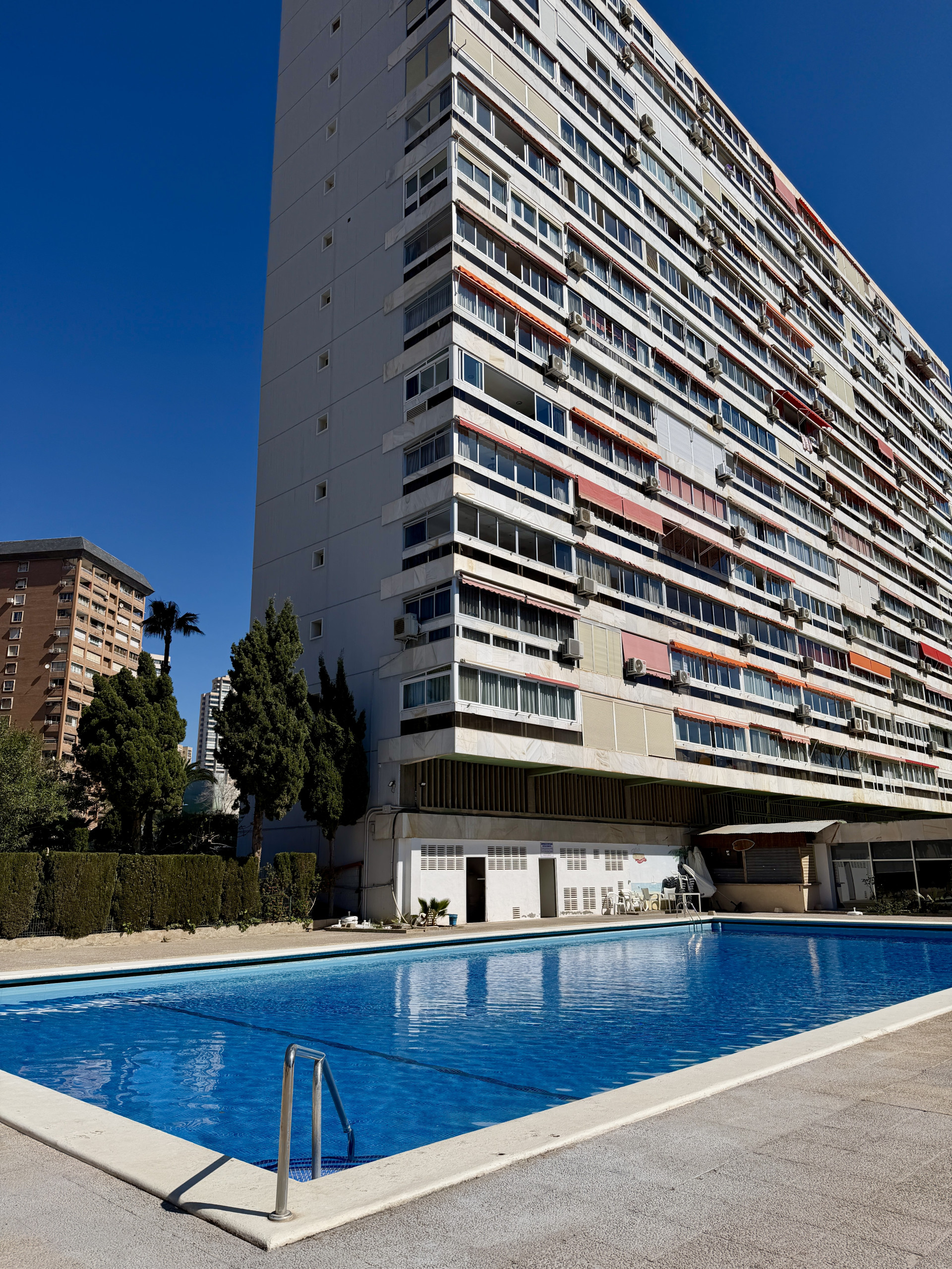 El edificio dispone de parking comunitario sujeto a disponibilidad con plazas limitadas y piscina comunitaria al aire libre de temporada, tanto de adultos como piscina infantil. También tiene zonas ajardinadas alrededor de la piscina.