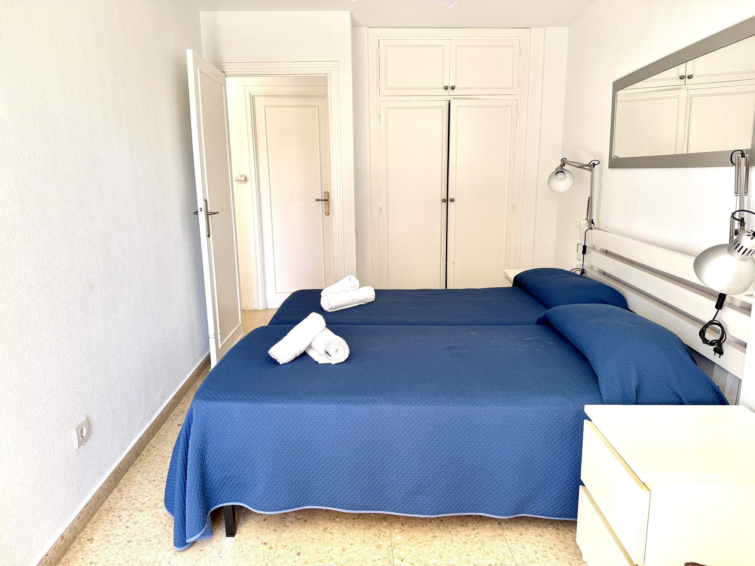 Dispone de un dormitorio con dos camas individuales. El baño es funcional con ducha y lavadora. La cocina comunica con el salón y cuenta con frigorífico, placa vitrocerámica y microondas. Salón con Smart TV, wifi y aire acondicionado y acceso a la terraza acristalada desde la que disfrutar de unas vistas al mar privilegiadas.