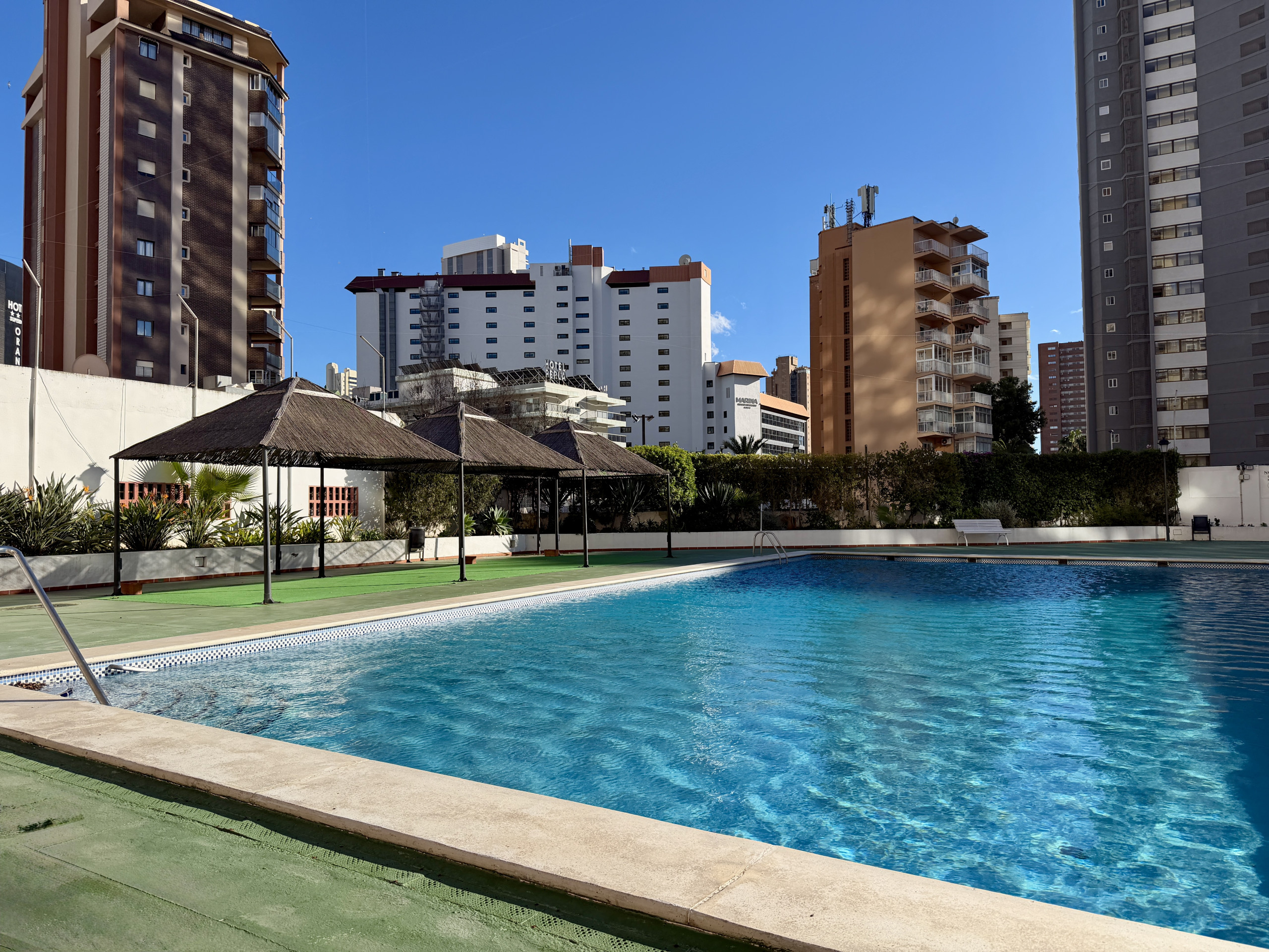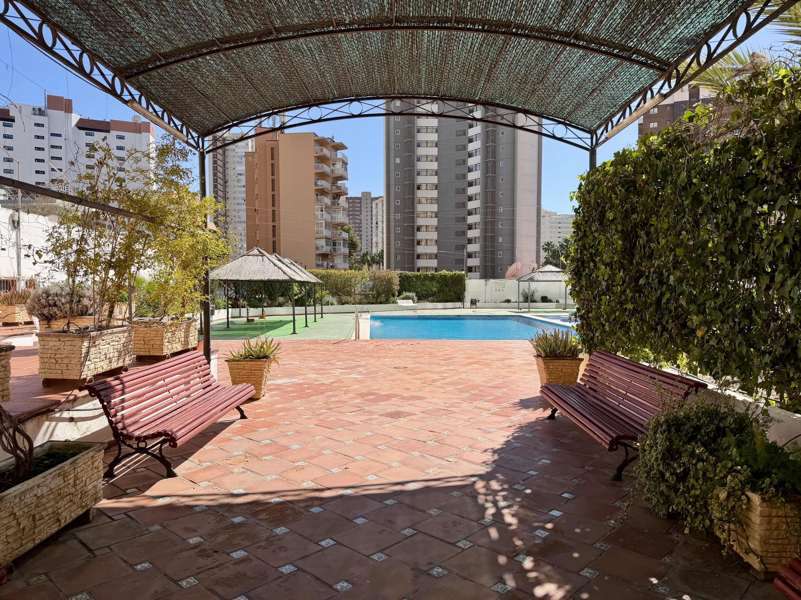 La résidence propose des piscines communautaires saisonnières et des espaces verts, parfaits pour profiter du climat de Benidorm. De plus, le bâtiment dispose d'un parking couvert (sous réserve de disponibilité).