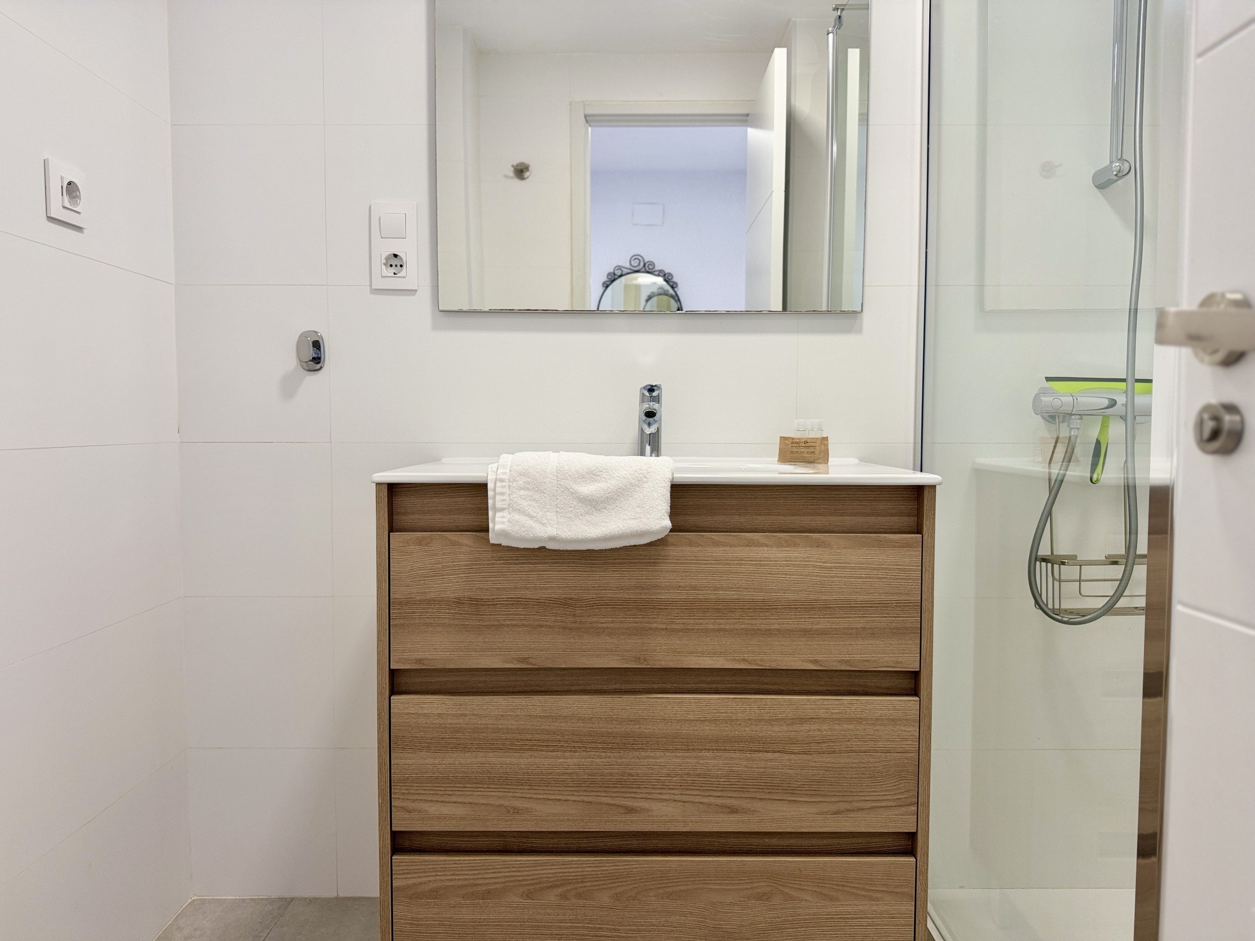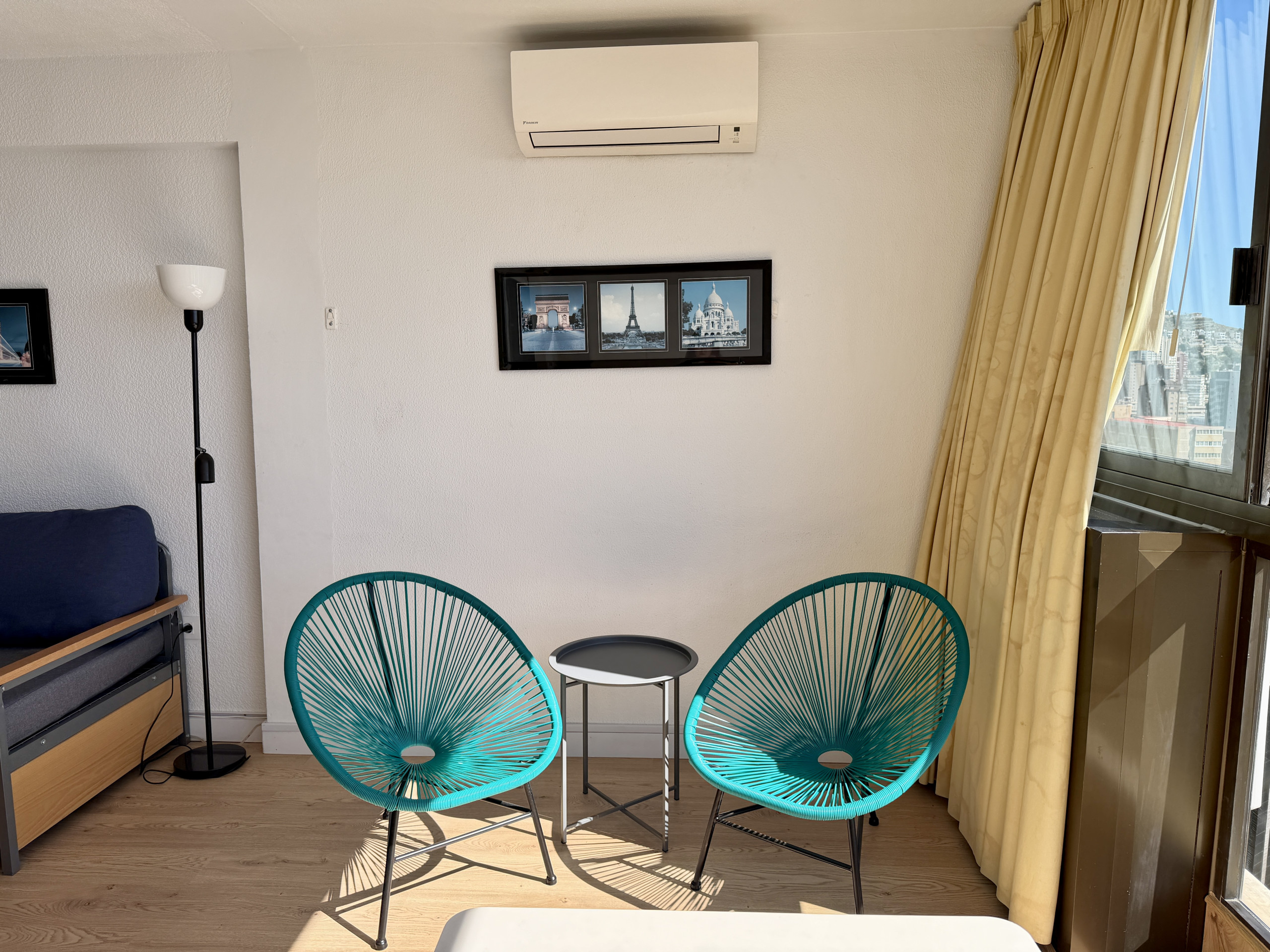 L'appartement peut accueillir jusqu'à 4 personnes et dispose d'une chambre avec deux lits individuels et d'un salon lumineux avec un canapé-lit, la climatisation et le wifi. Ses grandes fenêtres permettent de profiter de la lumière naturelle et de la brise méditerranéenne tout au long de la journée.