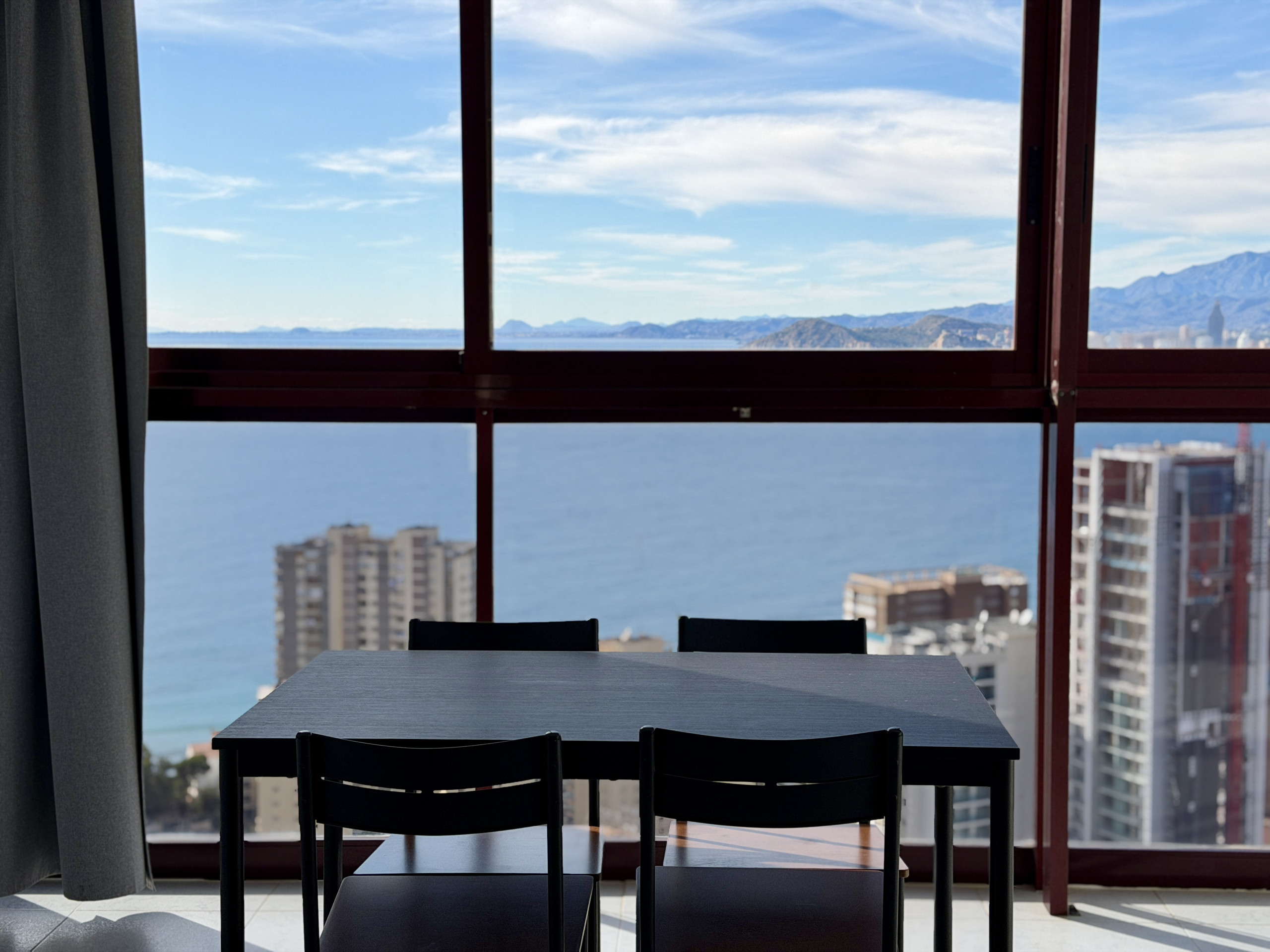 Découvrez cet appartement entièrement rénové au 13e étage du bâtiment Ducado avec une vue imprenable sur la mer.