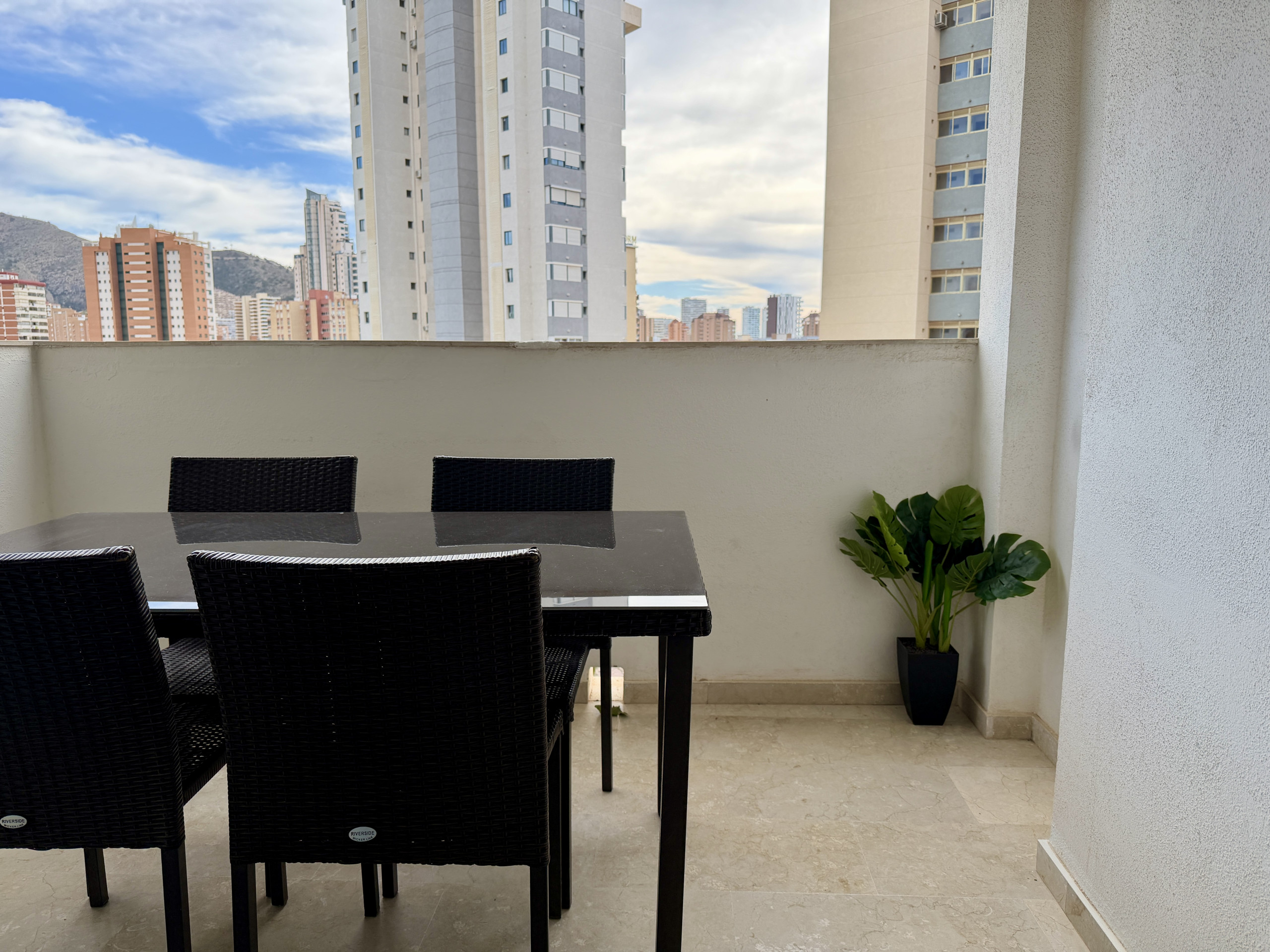 The apartment is located on the 19th floor of the Torre Levante building, situated on the first line of the beach.